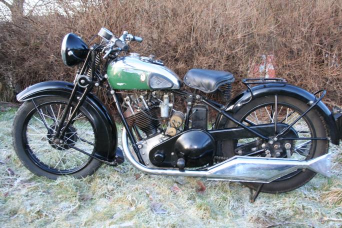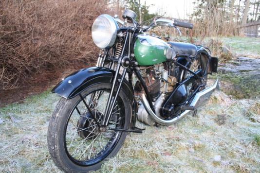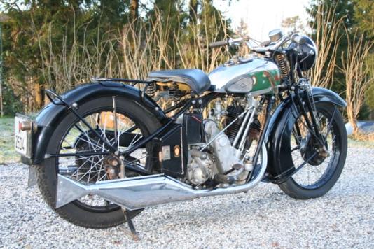Da BSA lanserte sin første Sloper-modell i august 1926, skilte den seg ut fra tidligere modeller med sitt sportslige design. Sloper erstattet etter hvert V-twinmodellene som BSA var mest kjent for på 1920-tallet. Den foroverlente sylinderen i Sloper-serien ga et sportslig preg, og tok seg unektelig godt ut i ramma. En rekke produsenter kopierte etter hvert BSA med tilsvarende løsning i sine modeller. Sloper-modellene gikk under betegnelsen “S”, og sykkelen vi har sett nærmere på er en S32-8 De-Luxe.