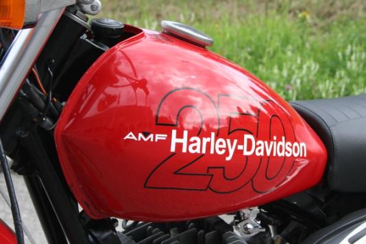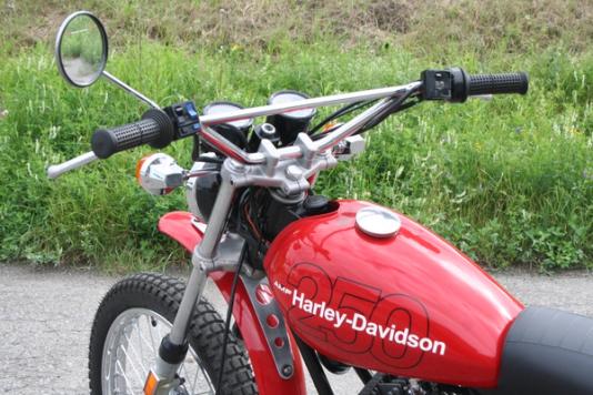 SX250 bærer med seg en litt underfundig historie. En Harley-Davidson, eid av AMF, produsert i Italia, og med et design til forveksling lik en japansk off-roader, kan best betegnes som en kuriositet. En lett offroader med 1-sylindret 2-taktsmotor var så langt fra hva mc-folket assosierte med Harley-Davidson som det var mulig å komme. Modellen var like fullt ingen tilfeldig valgt sådan. På 1970-tallet hadde Amerika en ganske så liberal fortolkning av veitrafikklovgivning og motorisert ferdsel i skog og mark.