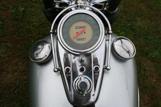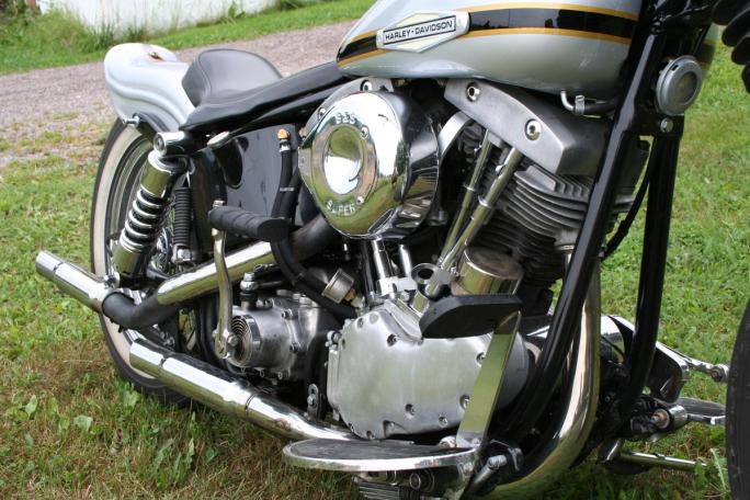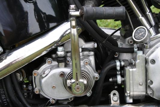 Den er senket og er relativt fri for unødig utstyr. Sykkelen var opprinnelig en Elektra Glide, og selv om mange av delene fra den “originale” sykkelen fortsatt sitter på, har han brukt mange deler fra andre Harleyer, modeller fra 50, 60, 70 og 80-tallet, nettopp for å få det riktige “stuket”. Noen av delene som er originale på denne modellen er de samme som Harley benyttet på 1930-tallet. Drivpakken er selvsagt en Shovelhead, noe som etter Mortens mening er den beste Shovelen som Harley laget, nettopp fordi den ble produsert før AMF kjøpte Harley-Davidson. Motoren har Morten fulloverhalt og utbedret, slik at svake punkt ikke lenger er en akilleshæl, for som han sier “Kjenner du denne motoren så vet du hva den trenger av tilpasninger for å fungere”. Vi tror han, for sykkelen startet på første tråkket. Det er det ikke alle Shovelheads som gjør!