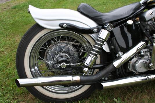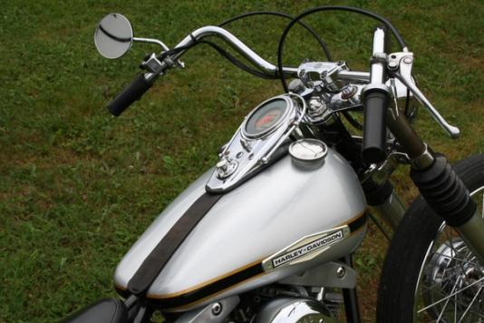 Da Morten startet å bygge denne sykkelen la han vekt på å bruke mest mulig genuine Harley-deler. Mye av delene som er i ettermarkedet er produsert i Østen. “Dette er jo bra greier, men det er jo ikke Harley” sier Morten når jeg spør hvor delene kommer fra. Her skal mest mulig være originalt HD, slik det var den gang på 1960-tallet da Harleyene ble customisert til choppere. Noen deler er Made in Taiwan, men de blir færre og færre etter hvert som han bytter ut disse når han finner originale HD-parts. Morten har bygd sykkelen i typisk 1960-talls California-stil, en stilart som kjennetegnes ved lave linjer, og med bred avkortet bakskjerm og uten framskjerm.