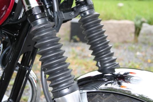 Hvordan ser så kopien ut, 50 år etter originalen. Noen vi hevde at den er erkebritisk i sin linjeføring og detaljer. Vi kan ikke annet enn si oss enige, den er sjeldent retroklassisk. W800 er nesten mer britisk i sitt design enn hva var tilfellet med W1-650. Og vil du ta det helt ut, så kan du legge på bordet drøye 10.000 kroner ekstra, og da får du et cafe-racerkit bestående av bl.a. både clubman-sal og styrekåpe. Er du blant de som ikke ønsker å ta frem verktøykassa, og montere dette selv, kan du få sykkelen ferdig levert i cafe-racerversjonen!