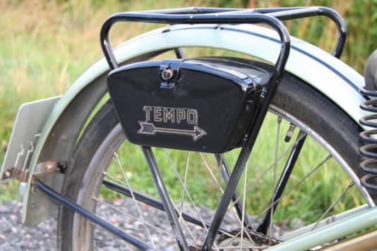 «Det koster å være kar, ihvertfall om vi skrur tiden tilbake» ler Per-Arne Heltne, og viser til det Tempoen kostet ny i 1938. «Du vet at 700,- kroner var et betydelig beløp den gangen, særlig for en Sunnmøring» legger han til, og ler høyt. Jeg fornemmer et snev av selvironi med tanke på at Per-Arne faktisk bor på Sunnmøre, nærmere bestemt i Volda. Per-Arnes «Sport» er modellen med Sachs-motor som har 2 gir. Sporten ble også levert med motor fra engelske Villiers, og den hadde 3 gir. Per-Arnes sykkel har komplett «utstyrspakke» som består av sykkelpumpe, verktøyboks og håndverktøy.
