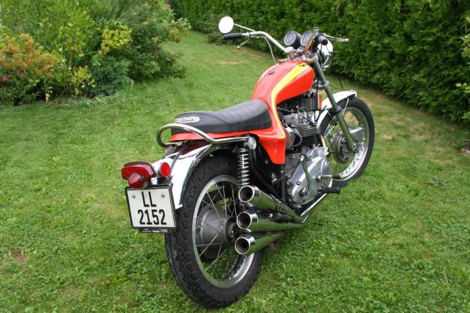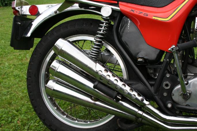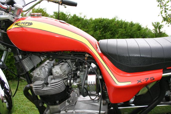 The bankruptcy was a fact, which led to the development of the triple being continued by Triumph. Thus Vetter completed his creation, which when it was ready for sale in 1972 was named Triumph X-75 Hurricane.