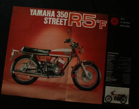«It`s a better machine» skrev Yamaha i salgsbrosjyren som promoterte den nye 350-kubikkeren i 1970, fulgt opp av utsagnet «This new and exciting motorcycle from the world`s leader in motorcycle engineering- Yamaha-………..». Store ord, men så har da beskjedenhet sjeldent vært noe salgstriks. Uansett, R5`F ble en svært populær motorsykkel som ga klingende mynt i kassa hos Yamaha.