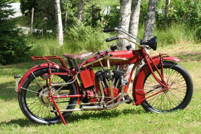 Stivrammer og lenkearmsgafler. I Amerika ble det etablert en rekke mc-produsenter rett etter århundreskiftet. I tillegg til Indian og Harley fantes det kjente merker som bl.a. Excelsior, Henderson, Ace og Flying Merkel for å nevne noen. Veinettet “over there” var preget av lange rette strekninger, og de amerikanske motorsyklene hadde et relativt stort slagvolum, ofte på rundt 1000-kubikk. Veinettetets standard stod imidlertid ikke i forhold til syklenes fartsressurser, og bakkekontakten var det ofte så som så med. Stivrammer var helt vanlig til inn på 1950-tallet, mens dempingen foran kom på plass ganske tidlig.
