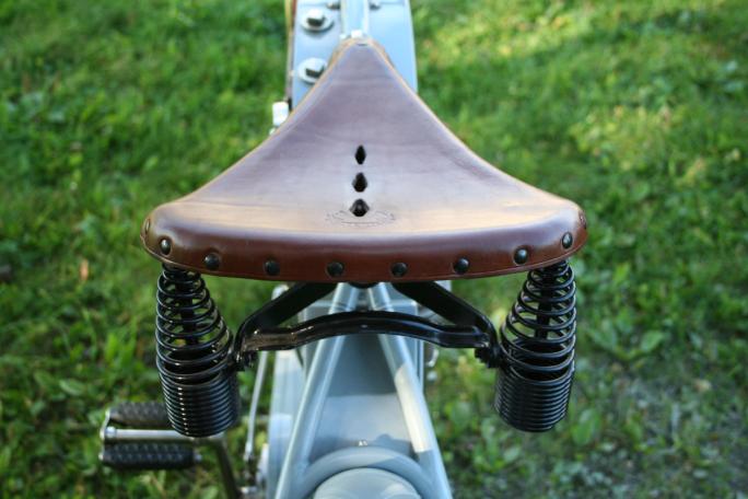 Noen hadde hverken bremser eller demping med unntak av setet som hadde et par spiralfjærer i bak. Jeg har sett nærmere på utviklingen av støtdemper- og rammeteknologi fra de første motorsyklene, og frem til dagens veteraner som ble “unnfanget” så sent som i 1995.