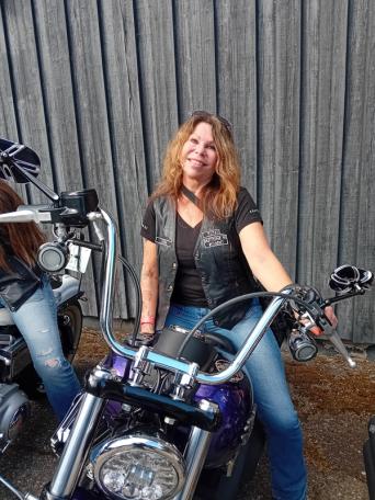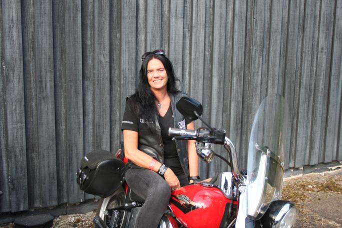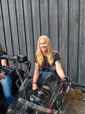 Tone Sculz Fjeldberg fra Hov. Er klubbens kasserer. Kjører Harley-Davidson Sportster 48, 2012-modell