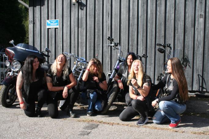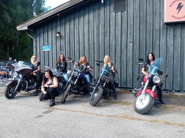 I det jeg ruller inn på parkeringsplassen foran klubbhuset til Powerplant Mc Mideast på Holter, får jeg øye på de der de står samlet rundt et knippe customiserte Harleyer. Latteren sitter løst, og stemningen er på topp. Jeg legger raskt merke til den rocka klesstilen med langt hår, sorte jeans, skinnvester og tatoveringer. Her snakker vi queens of custom, og det er akkurat det de er; mc-klubben "Drottningr Mc Østlandet".