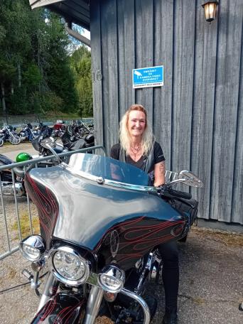 Tonje Smestad fra Gjøvik. Er klubbens Road captain, og kjører Harley-Davidson Street Glide, 2010-modell.