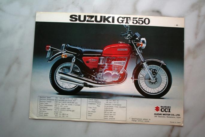 Suzuki tok 70-tallet med storm, og med sine blårykende 2-taktere inntok de posisjonen som en av de ledende mc-produsentene. Dette var 2-takterens tiår, og Suzukis modeller ble svært populære. Spetakulære farger, spreke motorer og spenstig akselerasjon er stikkord som oppsummerer modellene fra Suzuki. To av disse var twinnen T500, og trippelen GT550.