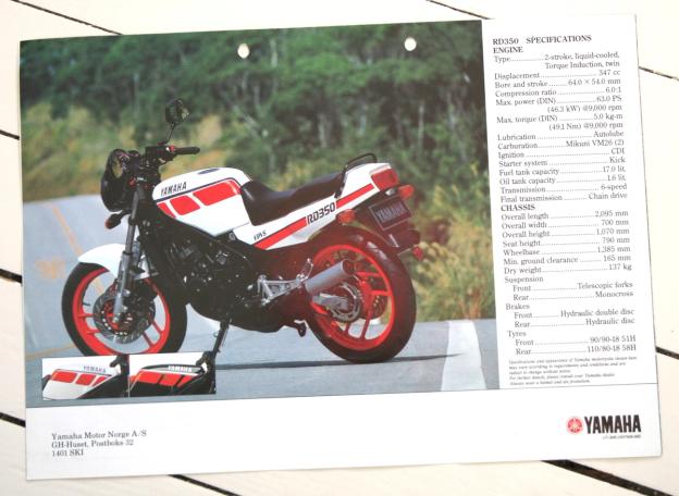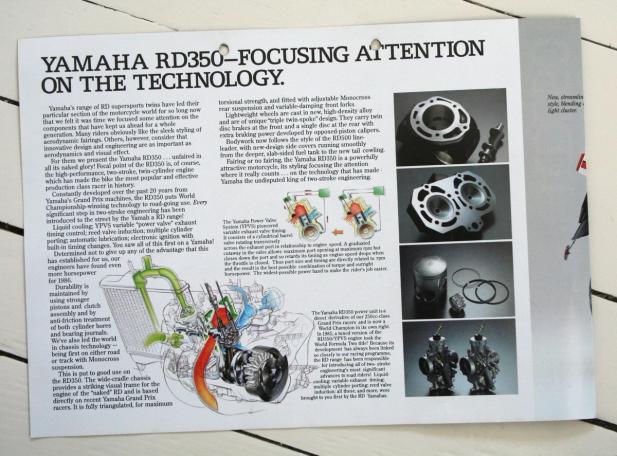 YAMAHA RD350 - FOCUSING THE ATTENTION ON TECHNOLOGY stod det å lese i brosjyren da Yamaha lanserte den nye generasjonen RD350LC på 1980-tallet.