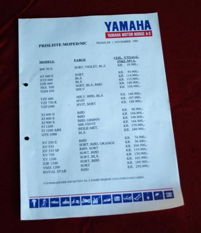 Yamaha's custom model XVZ1300A Royal Star topped the price list in 1996, costing 250,000 kroner.