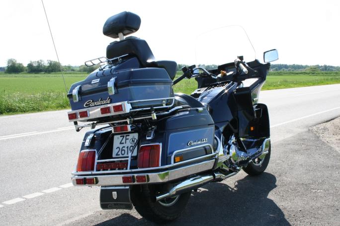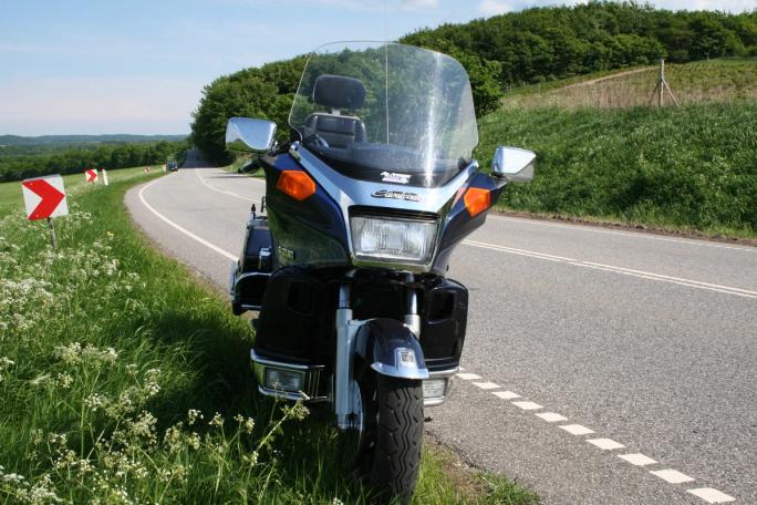 Sykkelen jeg lånt er toppmodellen LXE fra 1988. Cavalcaden ruver godt der den står parkert ved fortauskanten, og etter å ha satt meg til rette i “førersetet” innser jeg at dette ikke er en sykkel for kortvokste og uerfarne førere. Den er stor og tung, og krever bl.a. noe erfaring, særlig i lave hastigheter, da tyngdepunktet virker noe høyt. Etter hver som jeg forlater trafikken inne i det vesle tettstedet Allingåbro og finner motorveien med kurs for Grenå på Øst-Jylland, kommer imidlertid Cavalcadens egenskaper til sin rett. Den store kåpen gir fullstendig skjerming for fartsvinden, med unntak av føttene, noe som selvsagt er ugreit i tilfelle regnvær. Med cruisekontrollen innstilt på 100, glir jeg gjennom det Jydske landskapet. Den 4-sylindrede v-motoren gir et solid og jevnt drag gjennom hele registeret, samtidig som den er svært lydløs.