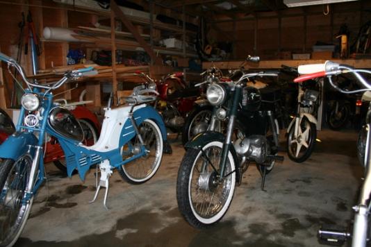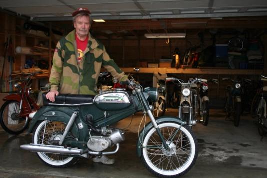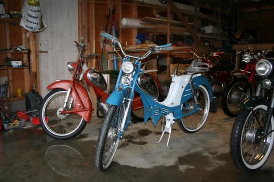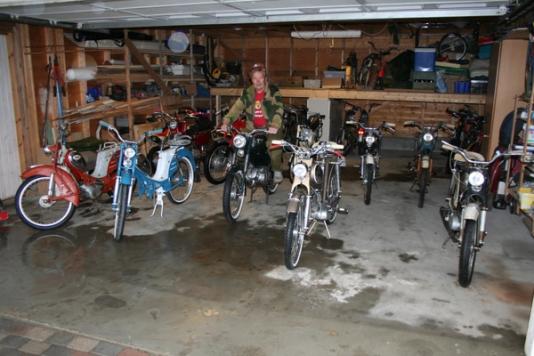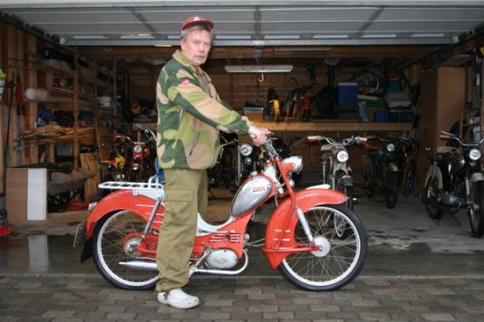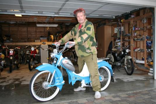 Et betydelig antall mopeder fant etter hvert turen hjem til Knuts garasje. Samlingen av veteran-mopeder bestod på det meste av nærmere 25 eksemplar, men nå nøyer Knut seg med "kun" 10 mopeder. Blant juvelene i samlingen finner jeg en strøken Raufoss-moped. "Det er særlig Raufoss-mopeden som har fanget min interesse" sier Knut, og peker på et flott eksemplar av et lite stykke norsk industrihistorie. Og, når været er pent lar han den vesle 2-takteren putre med en herlig stripe av blårøyk, for da nyter Knut tilværelsen. For som han sier; "De er jo bygget for å brukes".
