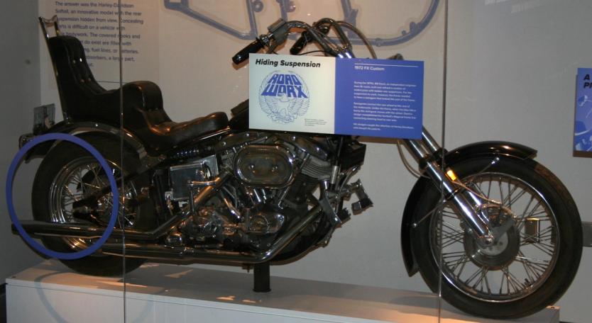 Softail i et tidlig stadium av utviklingen med støtdemperen under salen