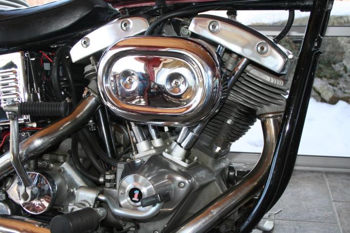 Klassisk Harley med svingarm og Shovelhead-motor.
