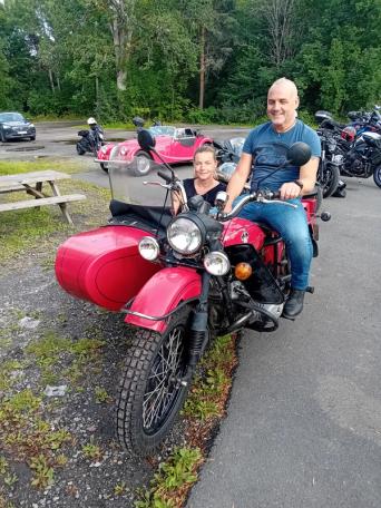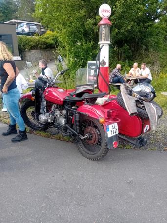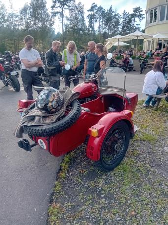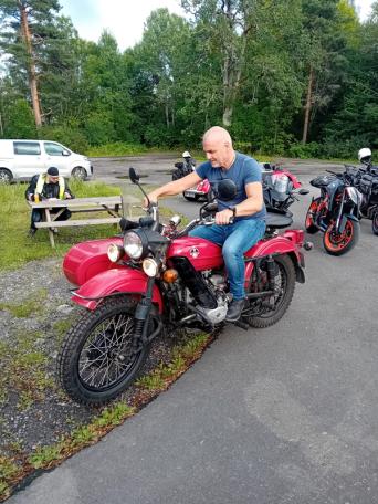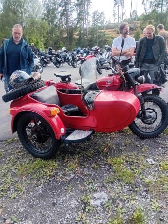 Innimellom alle de moderne og hyperraske motorsyklene som oftest fyller opp parkeringsplassen på Tyrigrava, dukker det opp en og annen mc litt utenom A4. Motorsykkelen som bokstavelig talt skilte seg ut i mengden denne onsdagskvelden var en knallrød Ural 650 med sidevogn fra 1995, som tilhører Bjørnar Sulen Naustvik og kona Monica Sulen Naustvik.