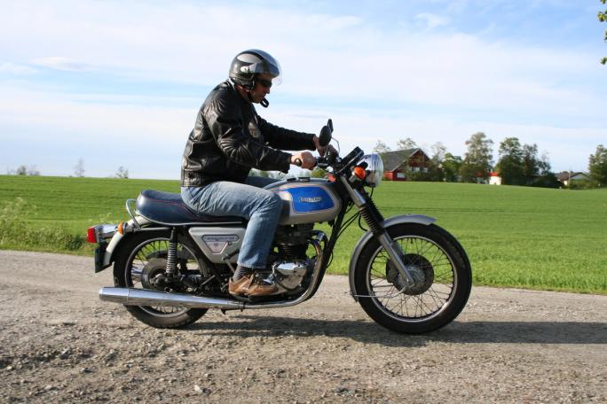 Som sagt så finnes det faktisk noen eksemplar av Silver Jubilee i Norge, og en av disse står hjemme på gården til Aage Gjelsvik på Romerike. Han har syslet med 2-hjulinger siden sent på 1970-tallet, og fokuset er rettet mot England og Triumph. Motorsykler derfra står høyt i kurs, og Aage er blant de mer aktive medlemmene i den norske Triumph-klubben. Jubileums-Bonnevillen ble kjøpt på Bømlo ved Bergen. Siden Aage ikke har noe imot lengre utflukter på engelske klassikere, satte seg på flyet til Flesland, og kjørt like godt sykkelen over fjellet og hjem til Akershus i strålende vårvær sent i mai 2008. Mot slutten av kjøreturen over fjellet begynte sykkelen å slure litt på clutchen. Denne ble derfor skiftet, selv om sykkelen kun hadde 3850 miles på speedometeret da han hentet den. I tillegg har han rettet og lakkert tanken, da denne hadde en bulk. På spørsmål fra meg om hvorfor han kjøpte akkurat denne Triumphen svarer han at; “grunnen til at jeg kjøpte denne sykkelen var at den dukket opp på nettet like etter at jeg hadde begynt å vurdere å kjøpe en gammel Bonneville. Siden denne var litt sjelden og i tillegg var gått lite, slo jeg til”. Ikke dumt, tenker jeg, for akkurat denne 750-kubikkeren finner du ikke på hvert gatehjørne.