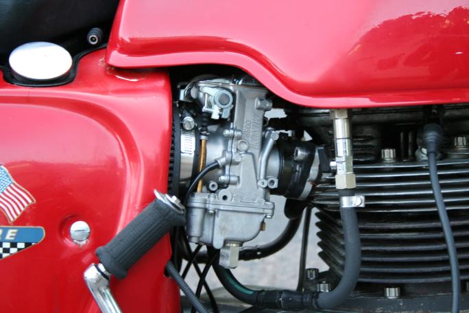 Originalt var Spitfire utstyrt med GP-gassere fra AMAL som i seg selv er et spektakulært syn, men da det ble klart at «innmaten» i poweregget mer eller mindre ble totalt skiftet ut til fordel for deler i kategorien high-performace, måtte det japansk teknologi inn i bildet i form av Mikuni-forgassere.