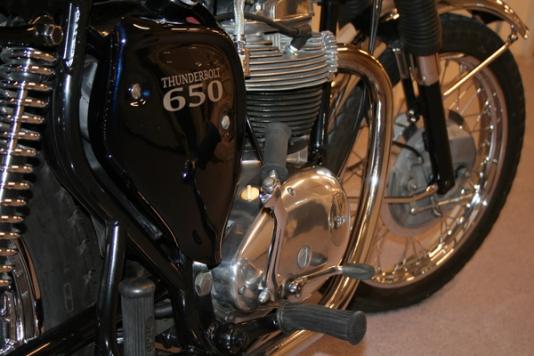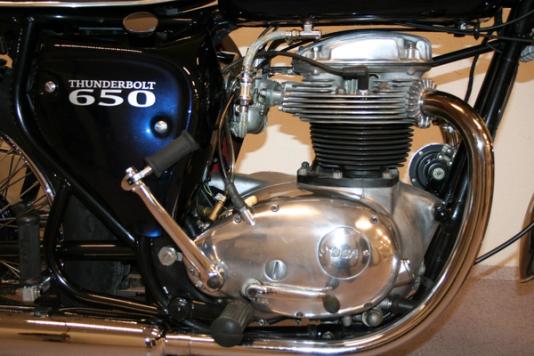 Thunderbolten har røtter tilbake til tidlig på 1960-tallet, en tid der det var duket for utvikling av en ny generasjon motorer hos BSA. Arbeidet ble ledet av Herbert Hopwood, en av ringrevene i engelsk mc-industri. I 1962 lanserte BSA de to parallelltwinnene A50 på 499 ccm og A65 på 654 ccm. Dette var en ny serie unit-motorer som avløste den gamle pre-unitserien A7 og A10. A65 ble ofte omtalt som “poweregg“ med bakgrunn i motorens utseende som minnet om et egg, et kraftfullt sådan. 650-kubikkeren ble drivkilden i legendariske BSA-modeller som bl.a. Rocket, Lightning Clubman og ikke minst Spitfire. Motorens ytelse lå på rundt 50 hk, litt avhengig av om den var utstyrt med enkel eller doble forgassere. Thunderbolten tilhørende Gard Ivar Ansok har enkelt forgasser, men ytelsen på 46 hk er det likevel ikke noe å utsette på, og «Den drar jevnt og godt gjennom hele registeret» sier Gard Ivar. Singelgasser-versjonen er forøvrig enklere å justere enn versjonene med doble gassere, som krever nøyaktig synkronisering for at motoren skal gå jevnt.
