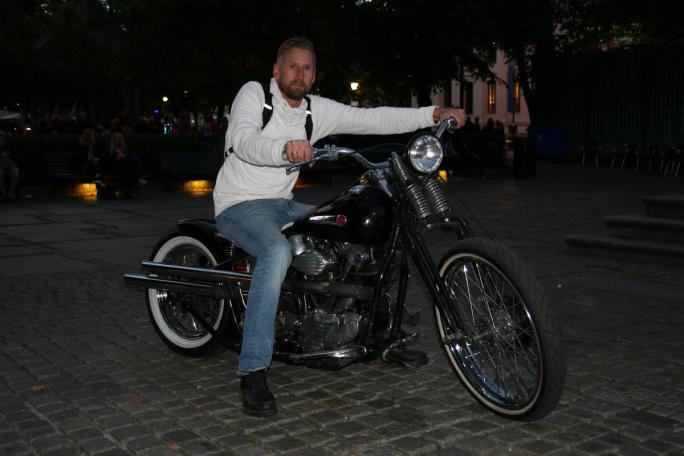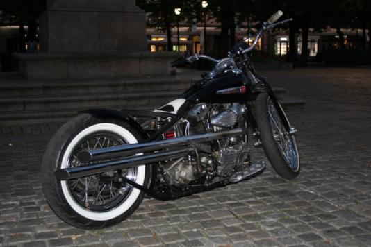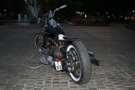 Jan Ransve fra Strømmen tilhører Harleys «menighet» for ombygde sykler, og kjører en 1947-modell med Knucklehead-motor. Jan kjøpte sykkelen på Hvaler vinteren 2011. Ramme og motor er fra 1947, resten er custom, bygd etter prinsippet om at «minimalizing is the way». Her er det «no frills». For å få det rette stuket samt å sørge for at den er lettstartet, har Jan montert ny felg foran med whiteside-dekk, og ny forgasser. Kraftoverføringen fra motoren skjer via et 3 tommers belt, og hjemmesnekrede fotbrett sørger for at bena er stødig plassert.
