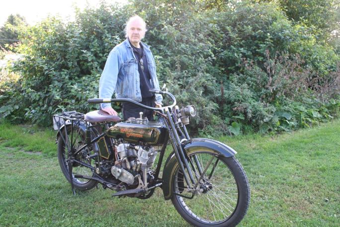 Halvdan Gyllander fra Oppegård sverger til Harley-Davidson, nærmere bestemt en 1922-modell på 1000-kubikk. Dette er en «sen» utgave av Modell F. Halvdan kjøpte Harleyen i Oslo i 1987 for å ha noe skru på. Sykkelen var for øvrig ikke helt komplett, og den manglet bl.a. verktøykassa, den ene bensinkrana, lykta, hornet og speedometeret. Å starte den var ikke mulig, så noen prøvekjøring av objektet var utelukket. Teknisk sett var den meget sliten, og den gule kostemalingen var heller ikke verdig et gammelt jern fra Milwaukee. Det ble derfor mer arbeid enn bare skruing, og sykkelen ble etter hvert helrestaurert. Det meste av lager og foringer ble også byttet, og magneten ble viklet opp igjen. Lakkarbeidet samt stafferingen har Halvdan stått for selv, og det samme gjelder forniklingen. Utstyr til fornikling kjøpte han fra England, og resultatet er meget bra.