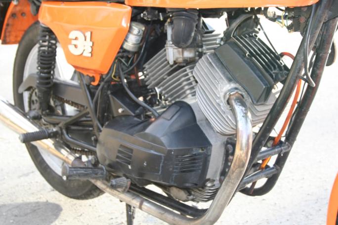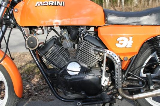 Gjør vi et sprang i tid, og beveger oss frem til 1973, finner vi den mellomtunge modellen Morini 3 ½ Sport på 350 ccm. Denne hadde, slik de fleste andre 4-takterne fra Morini, 2-sylindret v-motor. Motoren var imidlertid svært sofistikert, sammenlignet med v-motorene fra andre mc-produsenter. De mest avanserte 350-kubikkerne fra Moto Morini hadde bl.a. tannhjulsdrevne kamakslinger, tørrclutch og elektronisk tenning.
