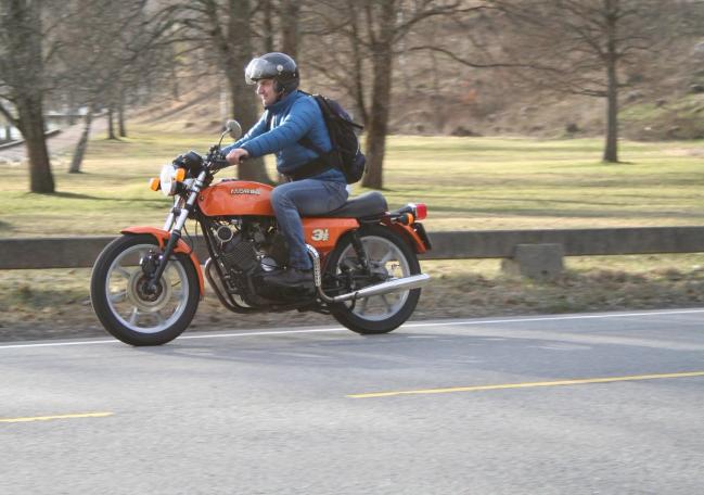 Axel Meo fra Oslo er en av de ytterst få i Norge som eier en 3 ½ Sport. Han kjøpte sykkelen av en venn i 2014. De hadde snakket mye motorsykkel, og vennens fascinasjon for italienske motorsykler smittet etter hvert over på Axel. De bestemte seg for å reise til Tyskland og importere en Moto Morini. Motorsykkelen som Axel tok med hjem viste seg å ikke være i særlig bra stand, og det endte med motorhavari.Lidenskapen for italienske tohjulinger havarerte imidlertid ikke, og da Axel fikk tilbud om å kjøpe kameratens Moto Morini 3 ½ Sport, nølte han ikke. Sykkelen var i meget god stand, etter en omfattende restaureringsjobb, så nå nyter Axel turene i lyden fra den italienske v-twinnen.