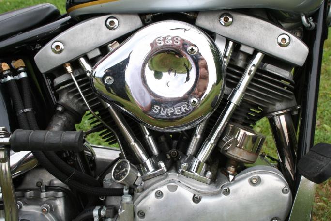 Motoren er selvsagt en Shovelhead, noe som etter Mortens mening er den beste Shovelen som Harley laget, nettopp fordi den ble produsert før AMF kjøpte Harley-Davidson. Motoren har Morten fulloverhalt og utbedret, slik at svake punkt ikke lenger er en akilleshæl, for som han sier “Kjenner du denne motoren så vet du hva den trenger av tilpasninger for å fungere”. Vi tror han, for sykkelen startet på første tråkket. Det er det ikke alle Shovelheads som gjør! Nå har det seg slik at Morten har flere sykler stående, og tenker derfor å selge Shovelen. Er du interessert så treffer du Morten på tlf +47 90670261.
