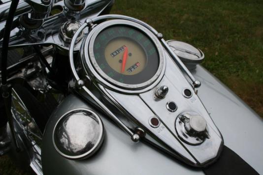 Some parts are Made in Taiwan, but they are becoming fewer and fewer as he replaces them when he finds original HD parts. Morten has built the bike in typical 1960s California style, a style characterized by low lines, wide truncated rear fender and no front fender. It is lowered and is relatively free of unnecessary equipment.