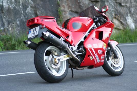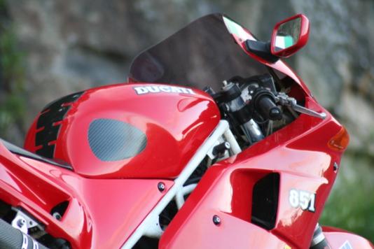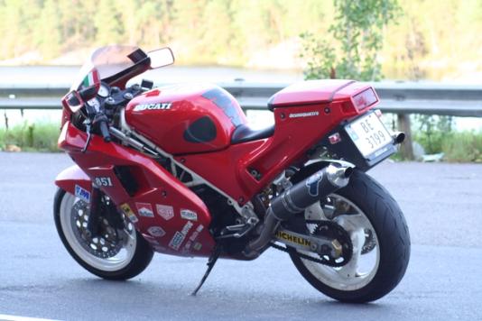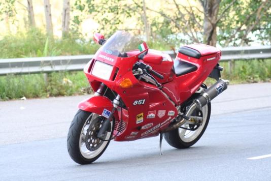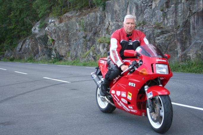 Så var det dette med de litt hvassere Ducatimodellen da. I 2000 dukket det opp en 851 hos et firma på Østlandet. Robert var rask på labben fordi han visste at slike godbiter fra Bologna ikke er dusinvare. 900-kubikkeren ble dermed byttet inn til fordel for 851-kubikkeren. Sykkelen trengte imidlertid mer enn bare et oljeskift, og Rober har bl.a. byttet hele det elektriske anlegget, og motoren er totaloverhalt. Litt annet småplukk her og der har også fått Roberts oppmerksomhet. Resultatet er en strøken 851, en skikkelig headturner. Da jeg traff Robert på Tyrigrava sist høst, samlet det seg mange skuelystne. En 851 er et sjeldent syn. Da jeg spør Robert om han har slått seg til ro med Ducatien, drar han litt på det, rister ett på hodet, og svarer at «En Ducati Multistrada står øverst på ønskelisten».